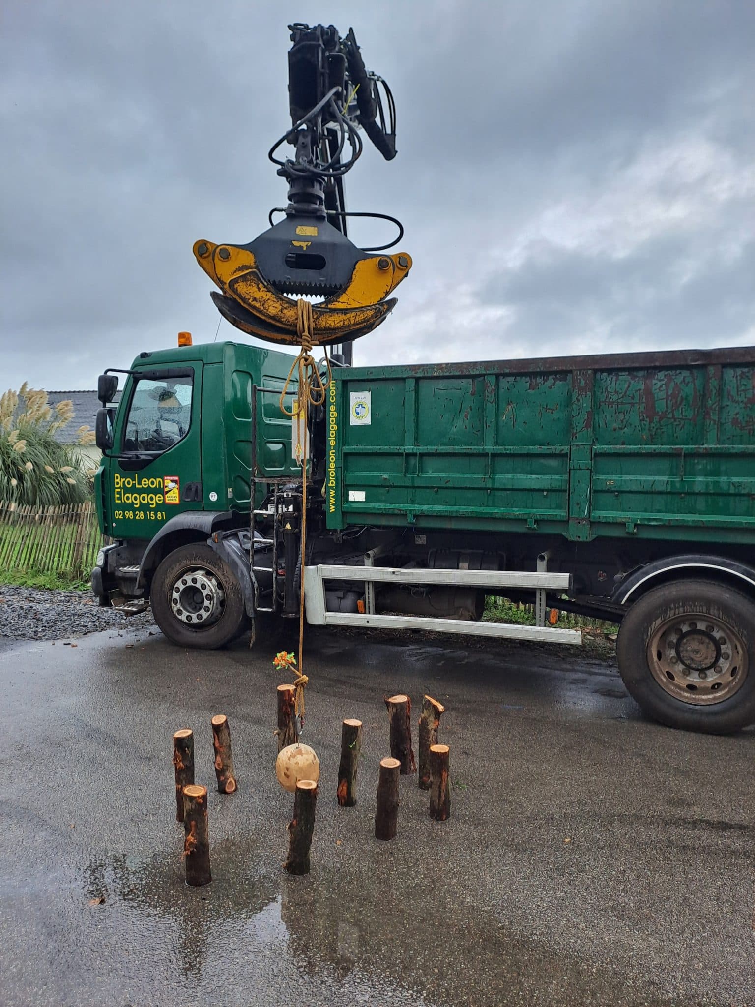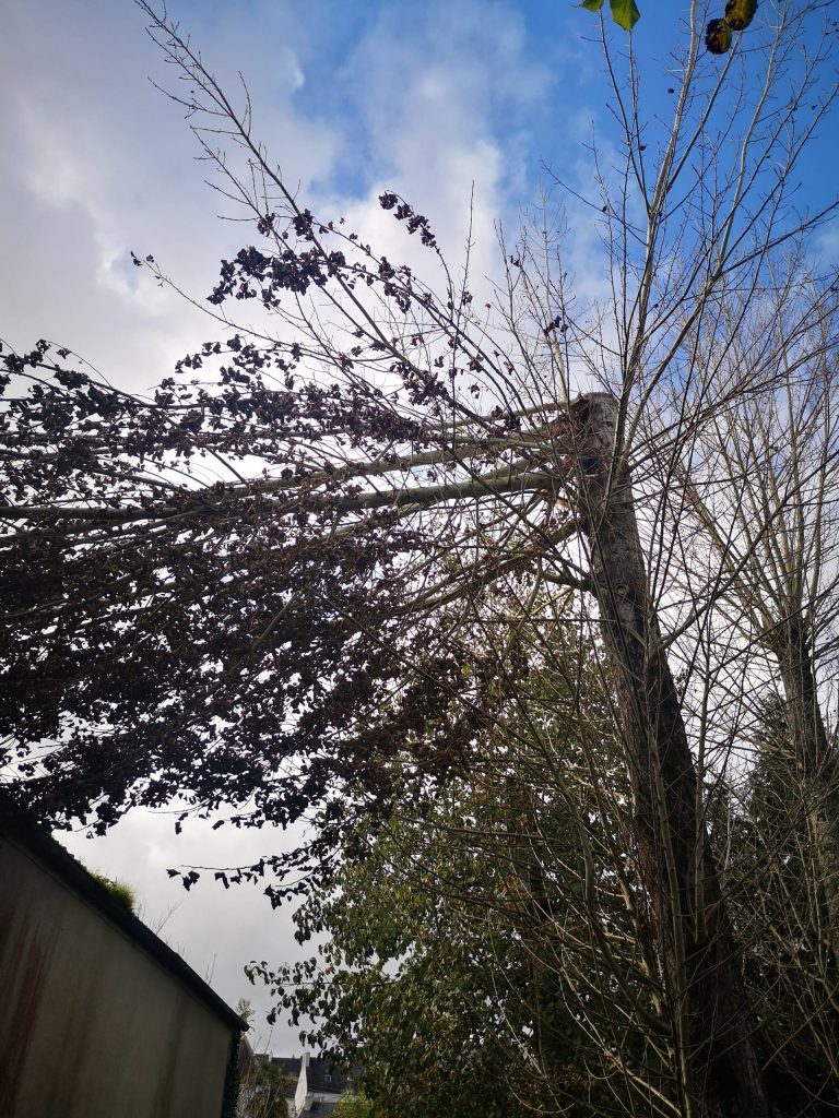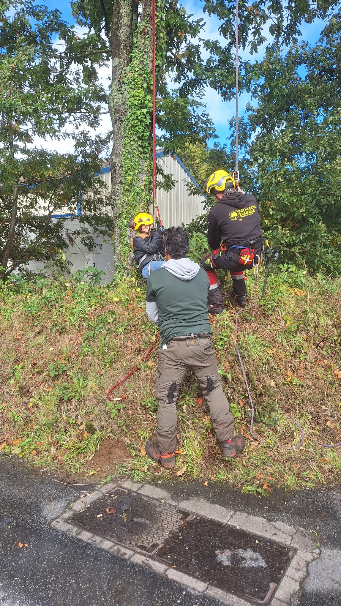 Travaux remarquablement effectués, dans des conditions difficiles ( pluie et vent), par un trio particulièrement qualifié, sur un tulipier de 17 m de haut, planté à seulement 6 m de notre maison par les anciens propriétaires. Soit une mise en sécurité que les tempêtes à répétition ont rendue impérative. Bravo !